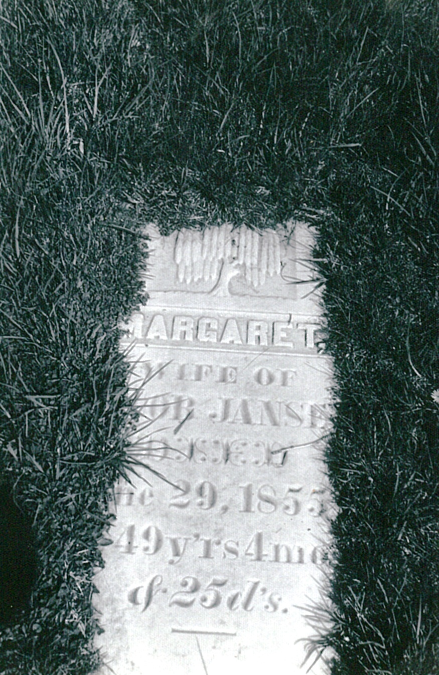 Margaret Jansen is the wife of Jacob Jansen. Buried in Dennahower Cemetery.
