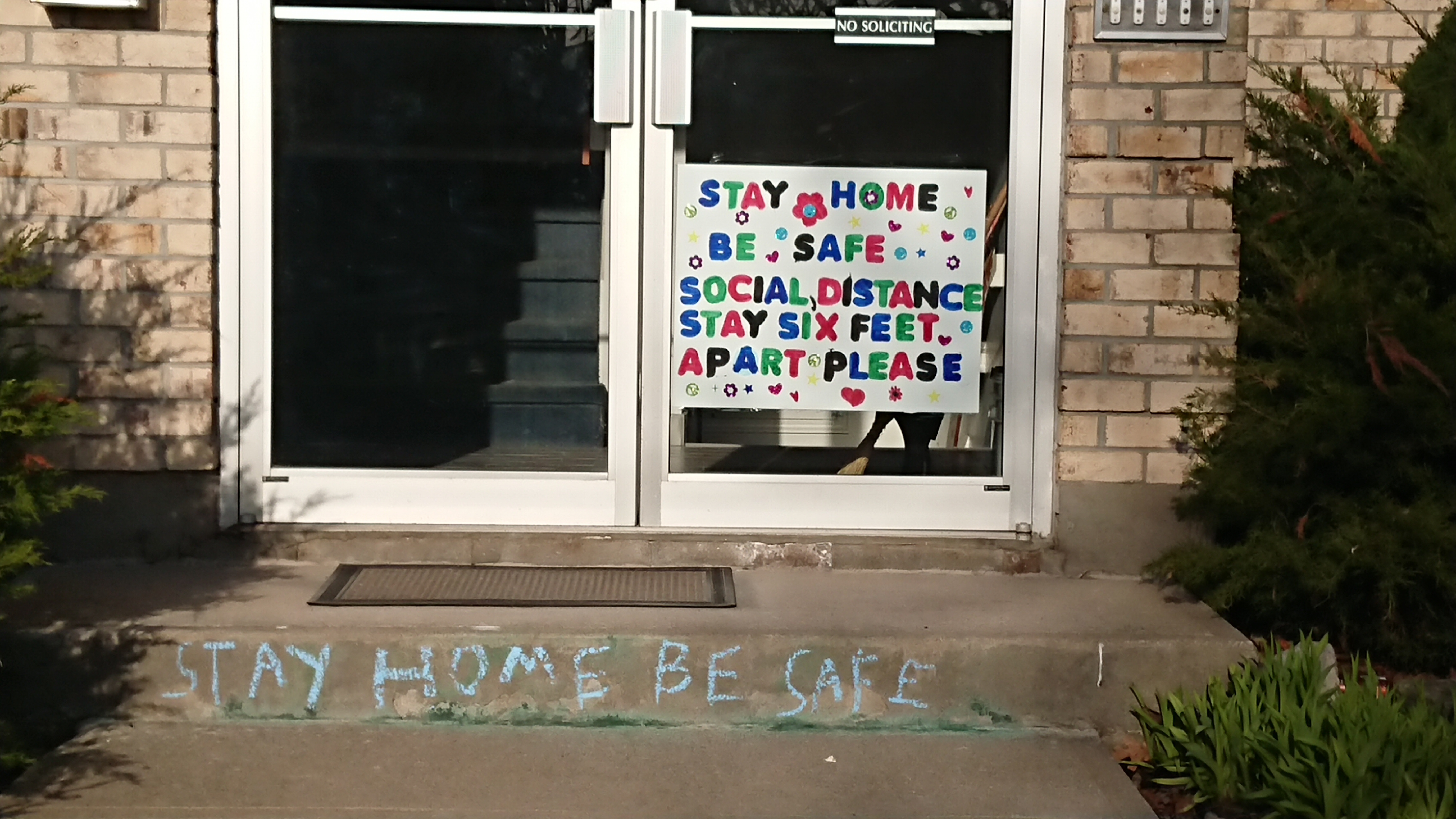 Listed here is a picture of an apartment building on Waterloo Street in the south end of town, bearing a sign spreading hope during the Covid-19 pandemic.