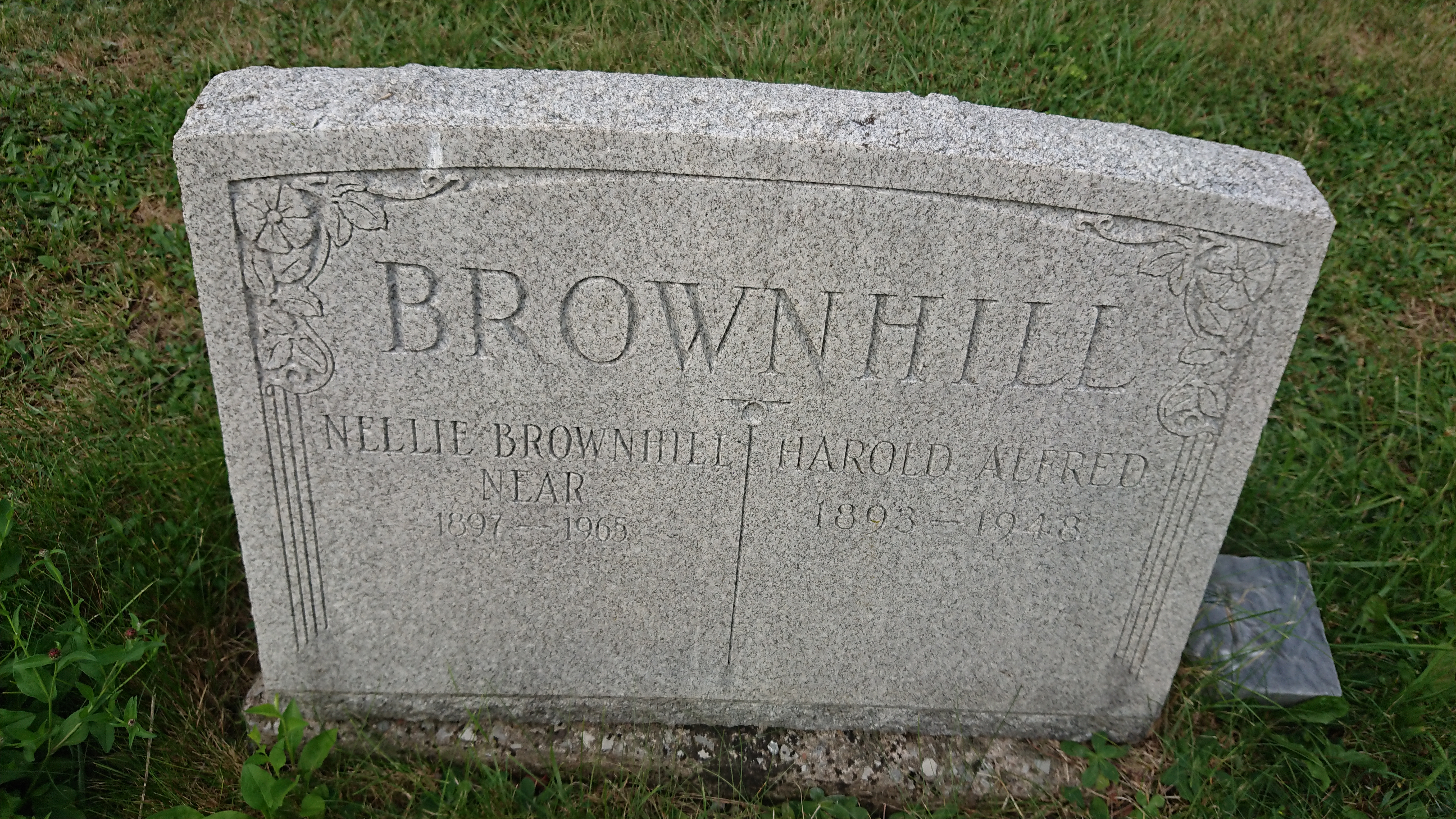 Pictured here is the grave of Harold Brownhill. He is buried with his wife Nellie. His grave is located in the northwest corner of St. Paul's Anglican Cemetery.