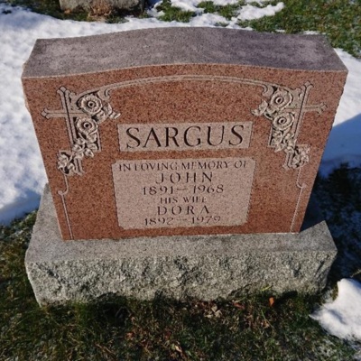 Pictured here is the grave of John Sargus. He is buried with his wife Dora. He is buried on the west side of St. Paul's Anglican Cemetery.